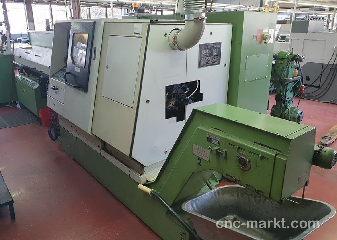 Traub CNC Drehmaschine TNX65, TX8i-s, Bj. 2009 Typ: TNX 65 Baujahr: 2009 Steuerung: TX 8i-s Haupt / Gegenspindel Stangendurchlass bis 65 mm, 3 Revolver, 3 x Y-Achse, angetr. Werkzeuge, 2 x C Achse, Gegenspindel, Späneförderer, Bandfilter, Kühlschmierstoffanlage, Teileband, Viel Zubehör ca. 4 angetr. Werkzeughalter, 15 starre Halter ca. 25.000 Spindelstunden Sehr guter Zustand, nur in Öl gelaufen Unter Strom, zu besichtigen