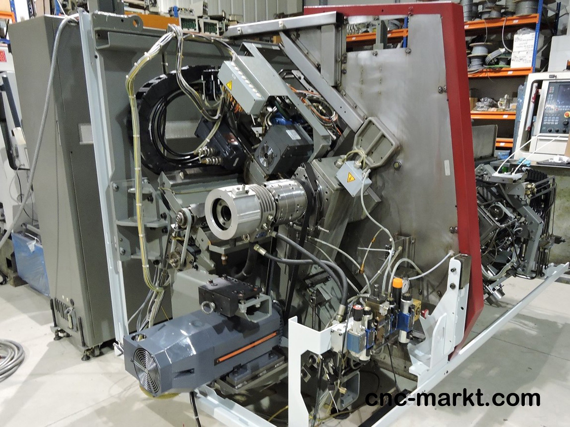 Traub CNC Turning Centre TNC65DGY, TX8H control system, partial overhaul • Traub TX8H Control system. • Year of Manufacture 2003 • Twin turrets – 10 Station, 30VDI. • Twin spindles with A6 din taper. • Full ‘Y’ axis on upper turret. • Maximum 4000RPM on both spindles. • ‘C’ axis on Main and Opposed spindle. • Documentation. • Traub polyform software for easy programming of complex milled profiles using the combined ‘C’ and ‘X’ axis movements for simulated ‘Y’ axis profile generating from the lower turret. • External coolant tank and coolant pumps. • Main & Opposite spindle equipped Hainbuch 65BZI type collet chucks for Ø65mm maximum bar. • Driven tools – both turrets. Max. 5600 RPM. • Parts ejector with through opposite spindle coolant. • Parts gripper. • ATC Tool measuring system. • Finished parts conveyor. • LNS Servo III short bar loading magazine. • Swarf conveyor.