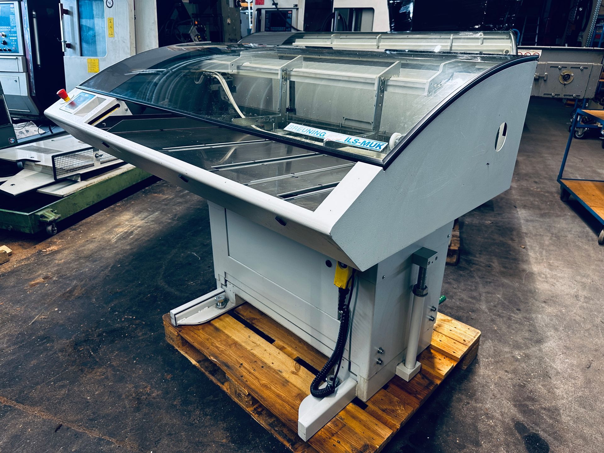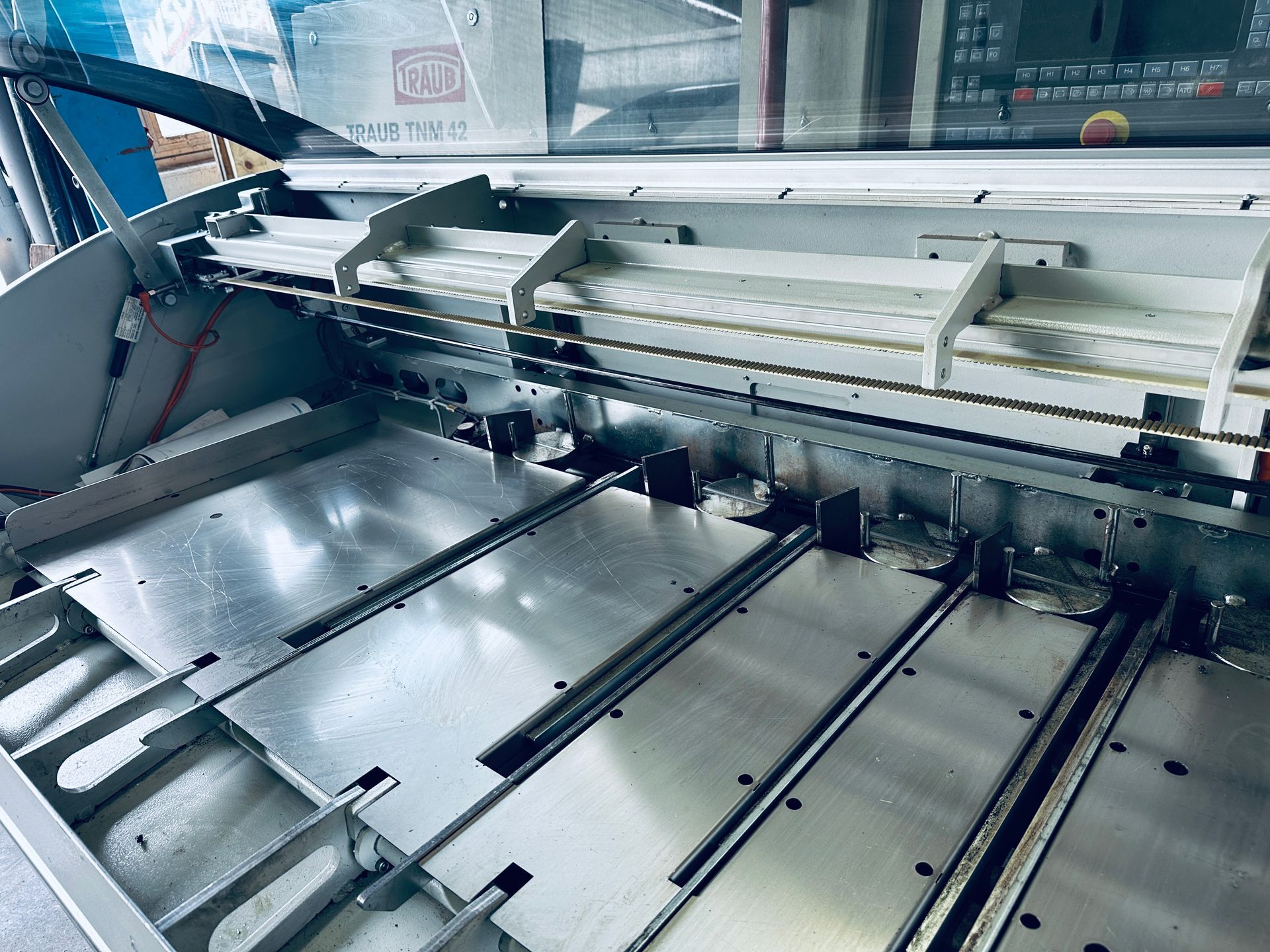 Traub CNC Drehmaschine TNX65, TX8i-s, Bj. 2009 Typ: TNX 65 Baujahr: 2009 Steuerung: TX 8i-s Haupt / Gegenspindel Stangendurchlass bis 65 mm, 3 Revolver, 3 x Y-Achse, angetr. Werkzeuge, 2 x C Achse, Gegenspindel, Späneförderer, Bandfilter, Kühlschmierstoffanlage, Teileband, Viel Zubehör ca. 4 angetr. Werkzeughalter, 15 starre Halter ca. 25.000 Spindelstunden Sehr guter Zustand, nur in Öl gelaufen Unter Strom, zu besichtigen