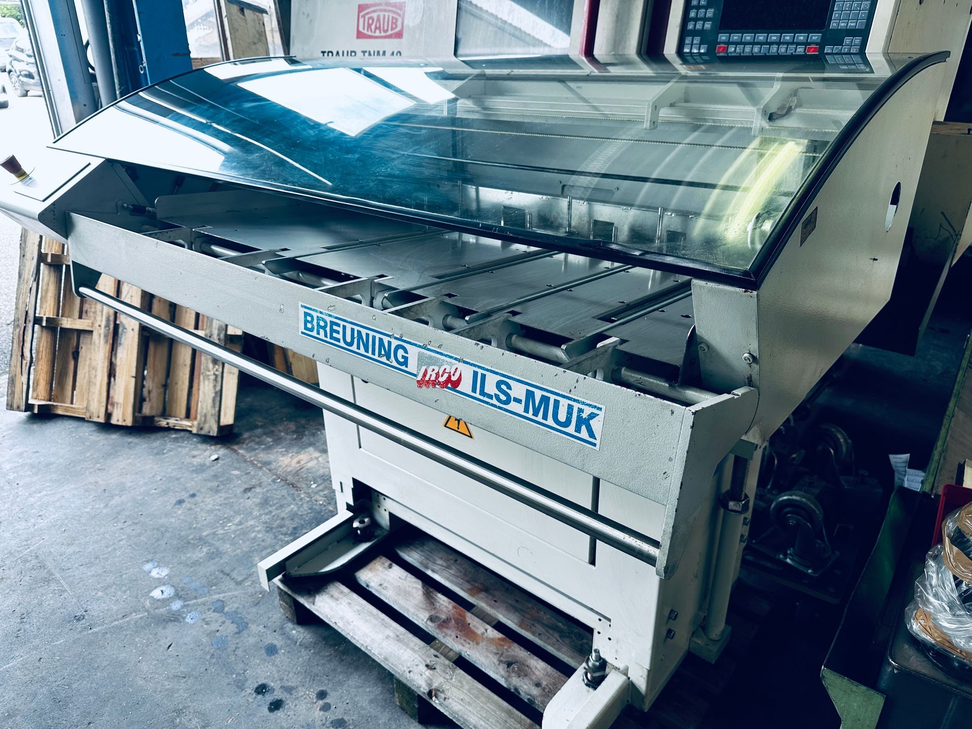 Traub CNC Drehmaschine TNL12, TX8I, Bj.2008, Ma.Nr.>850 C-Achse, Bremse auf HSP und GSP, rot. Werkzeugantrieb, FMB Minimag 18 Stangenlademagazin, nur in Öl gelaufen, Spänewanne, kein Späneförderer. (Ohne Absaugung, ohne Werkzeuge) Werkzeuge können nach Bedarf und Verfügbarkeit angeboten werden. Guter Zustand, unter Strom bis ca.24.02.2026 Ab Standort/Abbau, wie besichtigt, getestet.