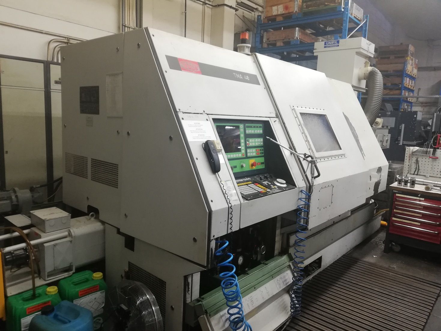 Traub CNC Drehmaschine TNX65, TX8i-s, Bj. 2009 Typ: TNX 65 Baujahr: 2009 Steuerung: TX 8i-s Haupt / Gegenspindel Stangendurchlass bis 65 mm, 3 Revolver, 3 x Y-Achse, angetr. Werkzeuge, 2 x C Achse, Gegenspindel, Späneförderer, Bandfilter, Kühlschmierstoffanlage, Teileband, Viel Zubehör ca. 4 angetr. Werkzeughalter, 15 starre Halter ca. 25.000 Spindelstunden Sehr guter Zustand, nur in Öl gelaufen Unter Strom, zu besichtigen