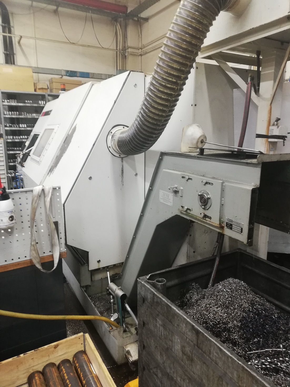 Traub CNC Drehmaschine TNX65, TX8i-s, Bj. 2011 Beschreibung: Typ: TNX 65 Baujahr: 2011 Steuerung: TX 8i-s Haupt / Gegenspindel Stangendurchlass bis 65 mm, 3 Revolver, 3 x Y-Achse, angetr. Werkzeuge, 2 x C Achse, Gegenspindel, Späneförderer, Bandfilter, Kühlschmierstoffanlage, Teileband, Viel Zubehör ca. 4 angetr. Werkzeughalter, 15 starre Halter Kurzlader Breuning ca. 114.586 Einschaltstunden ca. 51.400 Produktionszeit Zustand: Guter Zustand Unter Strom, zu besichtigen Lieferzeit: Ca. 2 Wochen, nach Vereinbarung