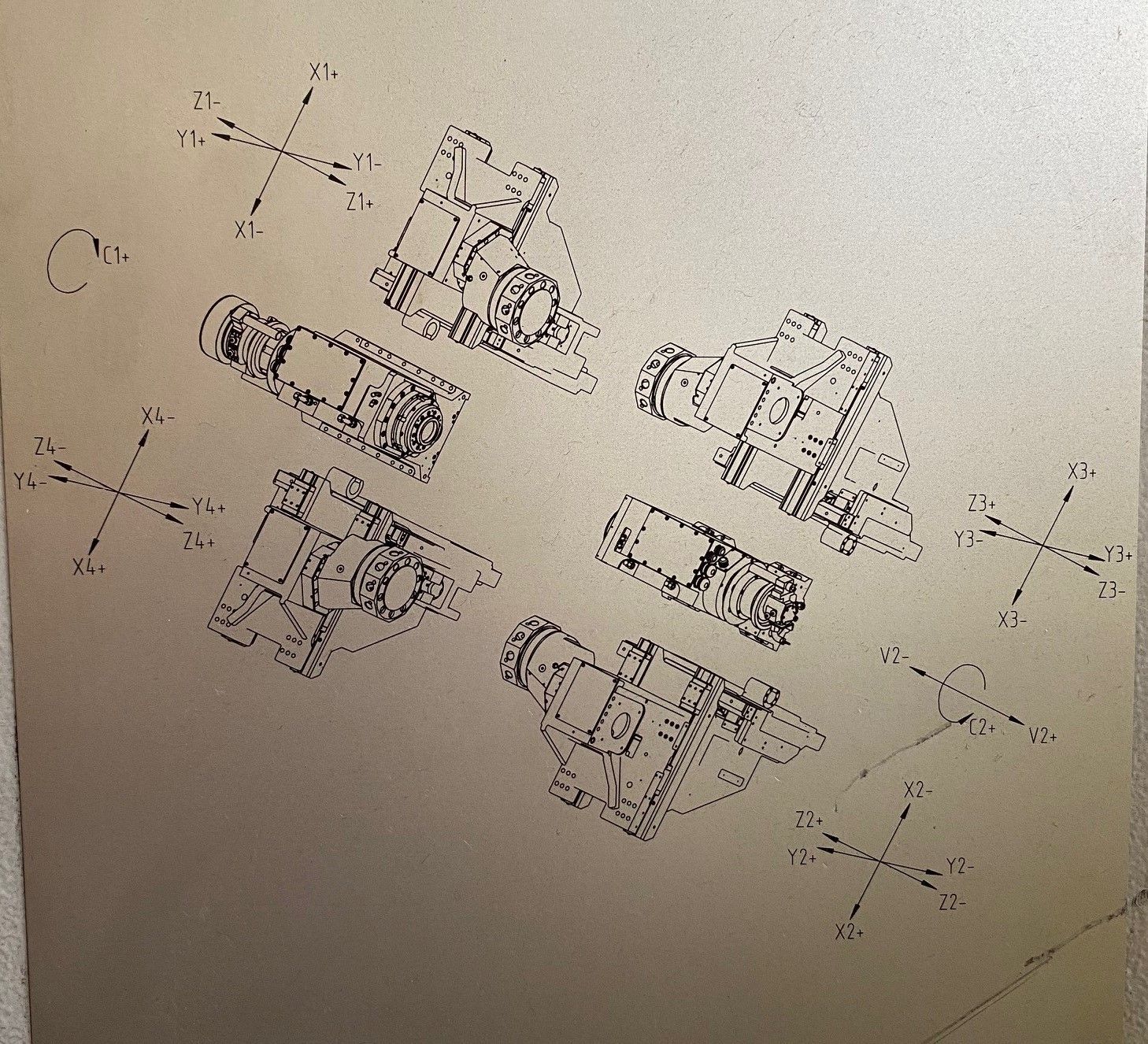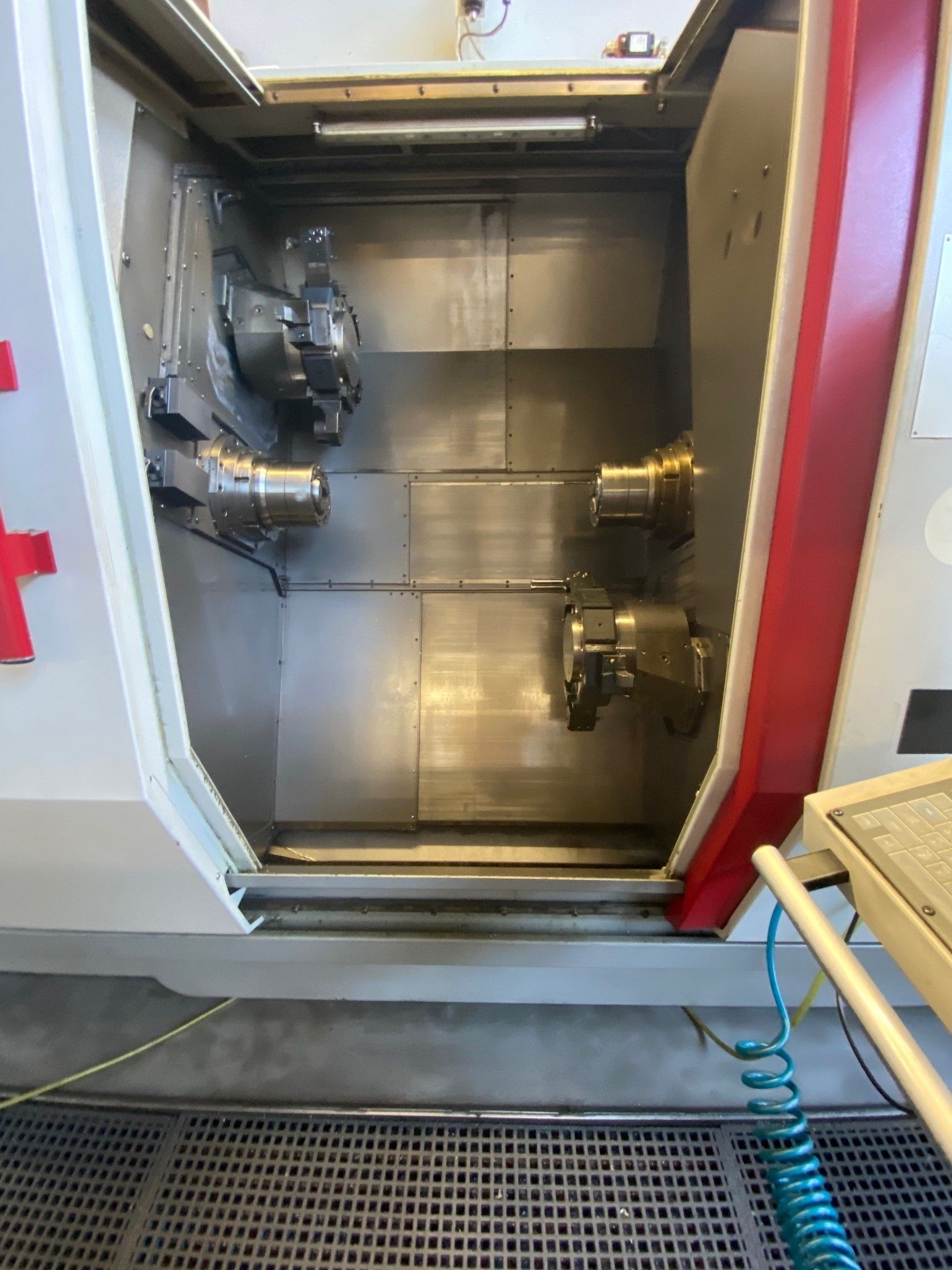 Die Maschine hat 2x Y-Achse, 2x C-Achse und beide Revolver mit angetriebenen Werkzeugen.