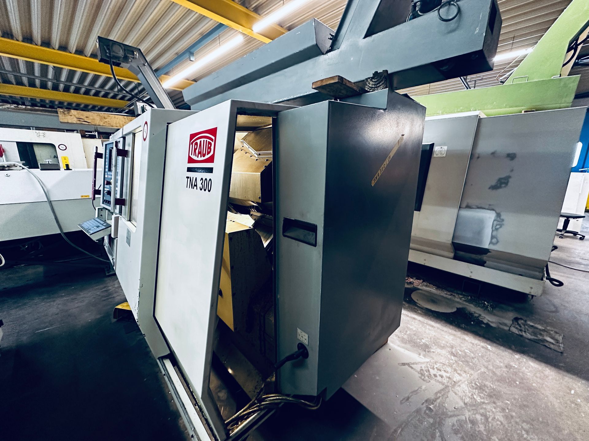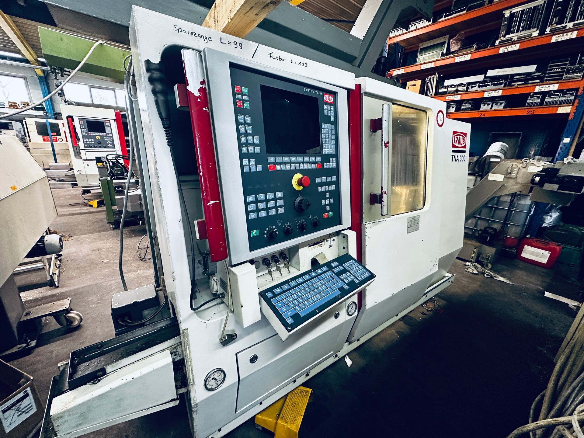 Traub CNC Drehmaschine TNA300Y, TX8H, Bj.2000 Y-Achse, C-Achse, rotierender Werkzeugantrieb, VDI30, Hohlspannzylinder 65mm, 185 E Spannzangenfutter 1 Revolver VDI30, Reitstock, Späneförderer, LNS Hydrobar ca. 38 000 Produktionsstunden Sehr gepflegt, guter Zustand. Unter Strom, zu besichtigen bis zum 29.08.2025