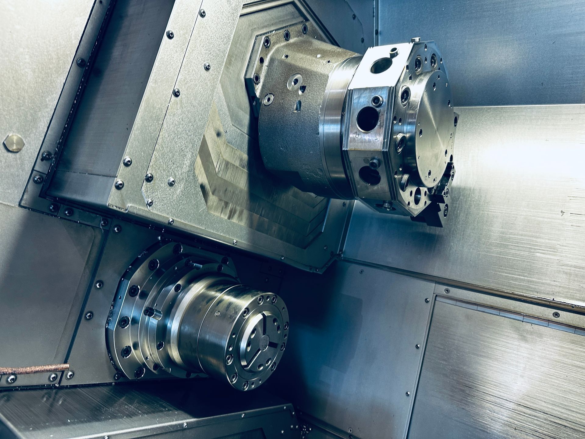 • 2x 14 Stationen Revolver mit rotierendem Werkzeugantrieb VDI25 • C-Achse auf Haupt-/Gegenspindel • Y-Achse auf Revolver 1 • 173E Spannfutter auf Haupt-/Gegenspindel •Hohlspannzylinder, DN42 Stangenlademagazin • Späneförderer • Spindelreduzierungen • Abgreifbacken • Spannzangen • Starre Halter (siehe Foto) • Rotierende Halter (siehe Foto) • Ersatzteilverzeichnis, Schaltplan, ATC Optik Maschine ist noch bis zum 23.01.2025 unter Strom zu besichtigen. Garantie-Gewährleistung, ab Verladen keine.